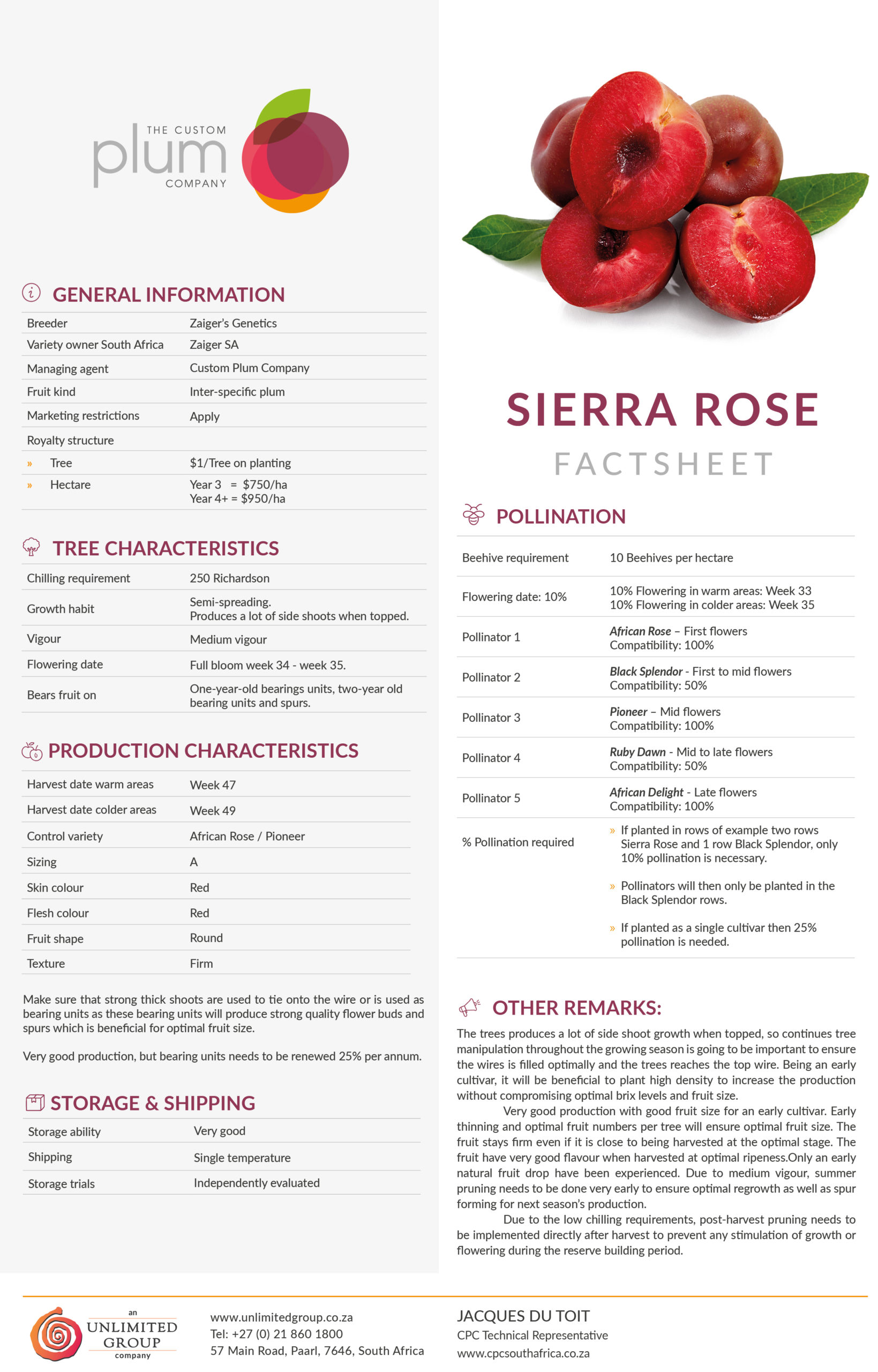 The Custom Plum Company brings innovation to the stone fruit industry, positioned at the forefront of new varietal development. We provide a fully integrated approach to developing new stone fruit in South Africa, through the Zaiger Genetics breeding program since 2002. CPC is a joint partnership between Unlimited Group and Fresca Group, ultimately combining both companies’ material and technical/promotional strengths.